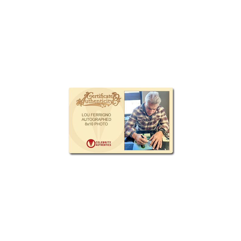 From the 1977 The Incredible Hulk series is this 8x10 scene photo personally hand-signed by famed actor and bodybuilder, Lou Ferrigno during his signing with Celebrity Authentics. Dr. David Banner is a widowed scientist caught in the middle of an experiment gone bad. As a result, whenever Banner gets extremely upset or stressed out, he turns into a huge green monster called the Incredible Hulk, with awesome strength and rage to match. To keep from being discovered, Banner lives a nomadic life, traveling from town to town in search of a cure and helping people where he can, all the while trying to avoid suspicious reporter Jack McGee, who wants to expose Banner and the Hulk. "Don't make me angry. You wouldn't like me when I'm angry," Banner warns McGee in more than one episode. Ships affixed with Celebrity Authentics serial-numbered and tamper evident Authentication Hologram and includes Celebrity Authentics Certificate of Authenticity featuring picture of Lou signing photo.