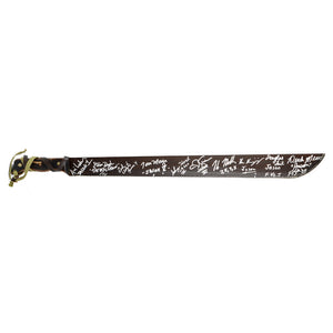 This official Friday the 13th Prop Replica Mask as worn by the ruthless Jason Voorhees in the 1985 Friday the 13th Part 5: A New Beginning film has been personally hand-signed by eleven of the actors who have portrayed the iconic maniacal killer including horror icons Derek Mears, Kane Hodder, C.J. Graham, Tom Morga, Ken Kerzinger, Caleb Guss, Johnny Hock, Ari Lehman, Douglas Tait, Warrington Gillette and Friday the 13th creator/director Sean Cunningham during their autograph signings with Celebrity Authentics. Stunning piece with each actor listing their movie credits. Produced by NECA, this licensed prop piece measures about 9" high and 8 1/4" and includes screen accurate wear markings throughout. Limited to only 100 cast autographed masks, completing the piece is an elastic strap attached to the back of the mask. A truly rare and extraordinary piece of Friday the 13th memorabilia. Mask ships affixed with the Celebrity Authentics serial-numbered and tamper evident Authentication Hologram and includes Celebrity Authentics Certificates of Authenticity featuring a picture of each signing mask.