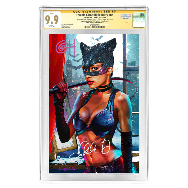 Halle Berry, Greg Horn Autographed Female Force: Catwoman #nn Virgin Variant Metal Cover #/50 CGC SS 9.9