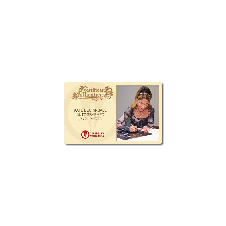 This classic 16x20 photo of Selene from the 2003 Underworld has been personally hand-signed by Selene herself, Kate Beckinsale during her exclusive signing with Celebrity Authentics. Under cover of night, vampires engage in an age-old battle with their sworn enemies, the Lycans, a clan of violent werewolves. Selene (Kate Beckinsale), a vampire orphaned in the wake of a bloody Lycan attack, works for the vampire clan as a trained killer. When the Lycans take a mysterious interest in Michael Corvin (Scott Speedman), an exceptional mortal doctor, Selene struggles to save him from Lucian (Michael Sheen), a ruthless Lycan leader hellbent on ending the vampire bloodline. Ships affixed with the Celebrity Authentics serial-numbered and tamper evident Authentication Hologram and includes Celebrity Authentics Certificate of Authenticity featuring a picture of Kate signing photo.