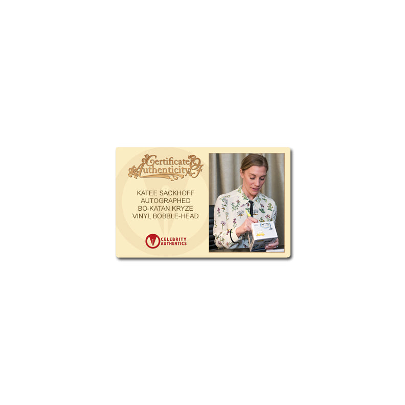 This Star Wars Bo-Katan Kryze Target Exclusive Pop! Vinyl Figure #693 has been personally hand-signed by fan favorite actress, Katee Sackhoff during her signing with Celebrity Authentics. Confident, sardonic, and deadly. Bo-Katan was the ever-loyal Mandalorian lieutenant to Pre Vizsla, and a proud member of Death Watch. Bo-Katan rallied to Death Watch's call for Mandalorians to embrace their martial heritage and find glory in war. Ships affixed with Celebrity Authentics serial-numbered and tamper evident Authentication Hologram and includes Celebrity Authentics Certificate of Authenticity featuring picture of Katee signing Pop Box.